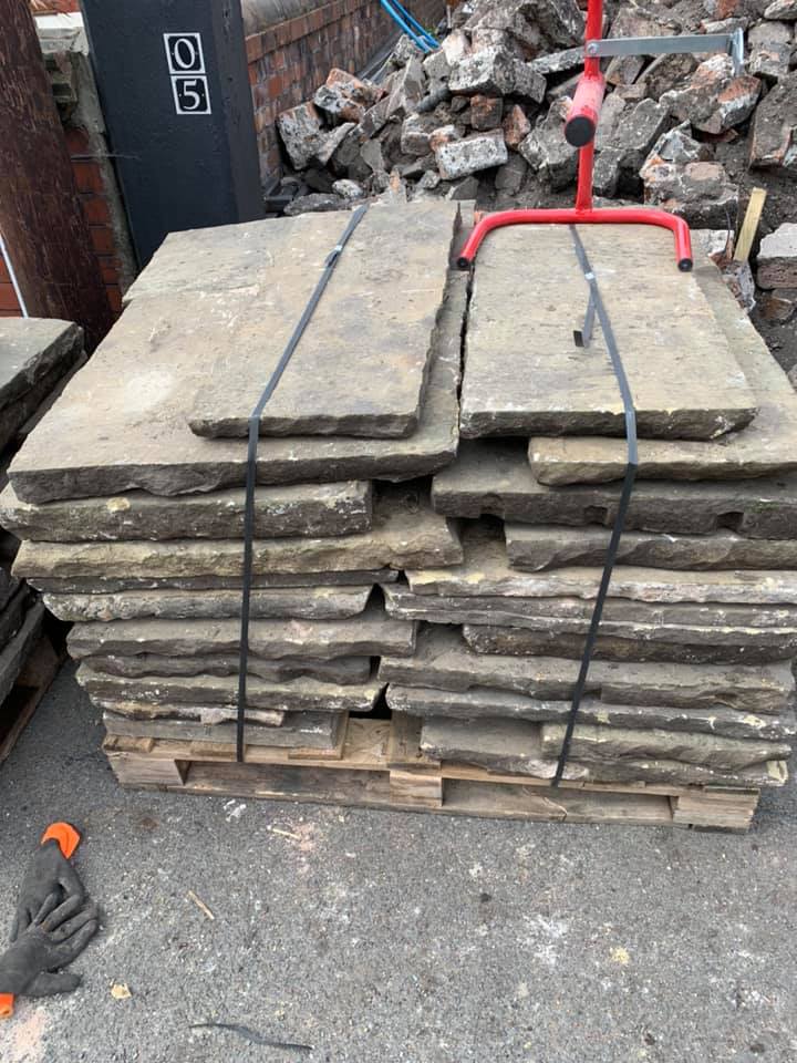 Our reclaimed yorkstone paving is a high quality durable stone paver, the appearance is naturally weathered and aged. depth of pavestone is between 2 & 4 inches. Overall sizes are random (guide (w)900 x (l)600 x (d)3inches ) The industry’s best for appearance and general layout quality. It is typically used for high end spec projects, full driveway / patio / renovation replacements and feature projects. Supplied by the M2